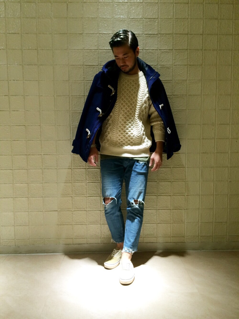 軽くて暖かいモッサ素材のダッフルコートは色が鮮やかなロイヤルブルーなので暗くなりがちな冬場も目立つこと間違いなし! デート着でもいいかと☆
