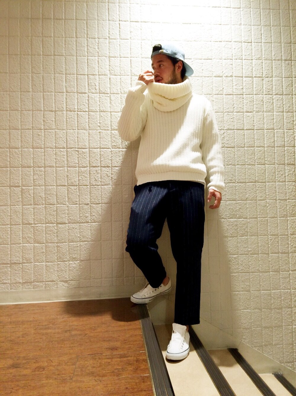 ikutoのその他パンツ「ワイドピッチストライプタックパンツ」を使ったコーディネート