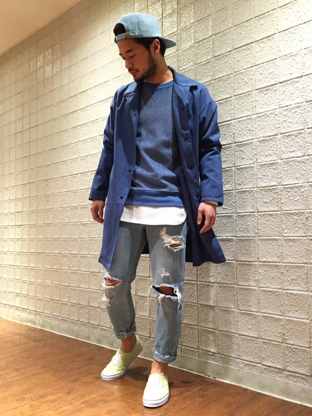 新作のステンカラーコート!! 鮮やかなブルーでワントーンに仕上げました! 続々新作入っているので是非!