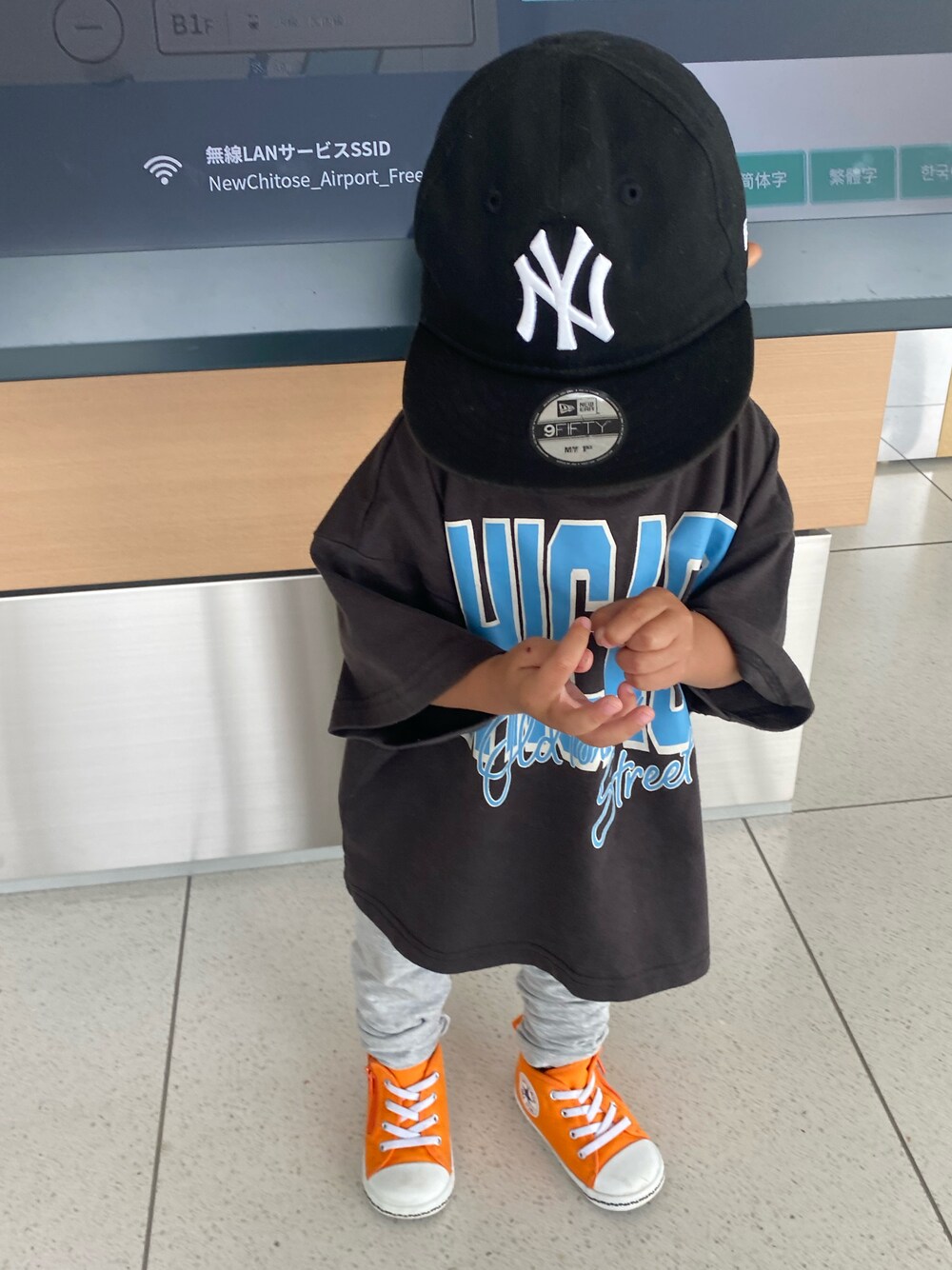 姉(4)撮影📷 いっちょ前にいい感じのポーズだけど 爪の逆剥け気になってます❤️ 今日のポイントもモノトーンコーデに足元のオレンジ🎃 1y11m/86cm/10kg
