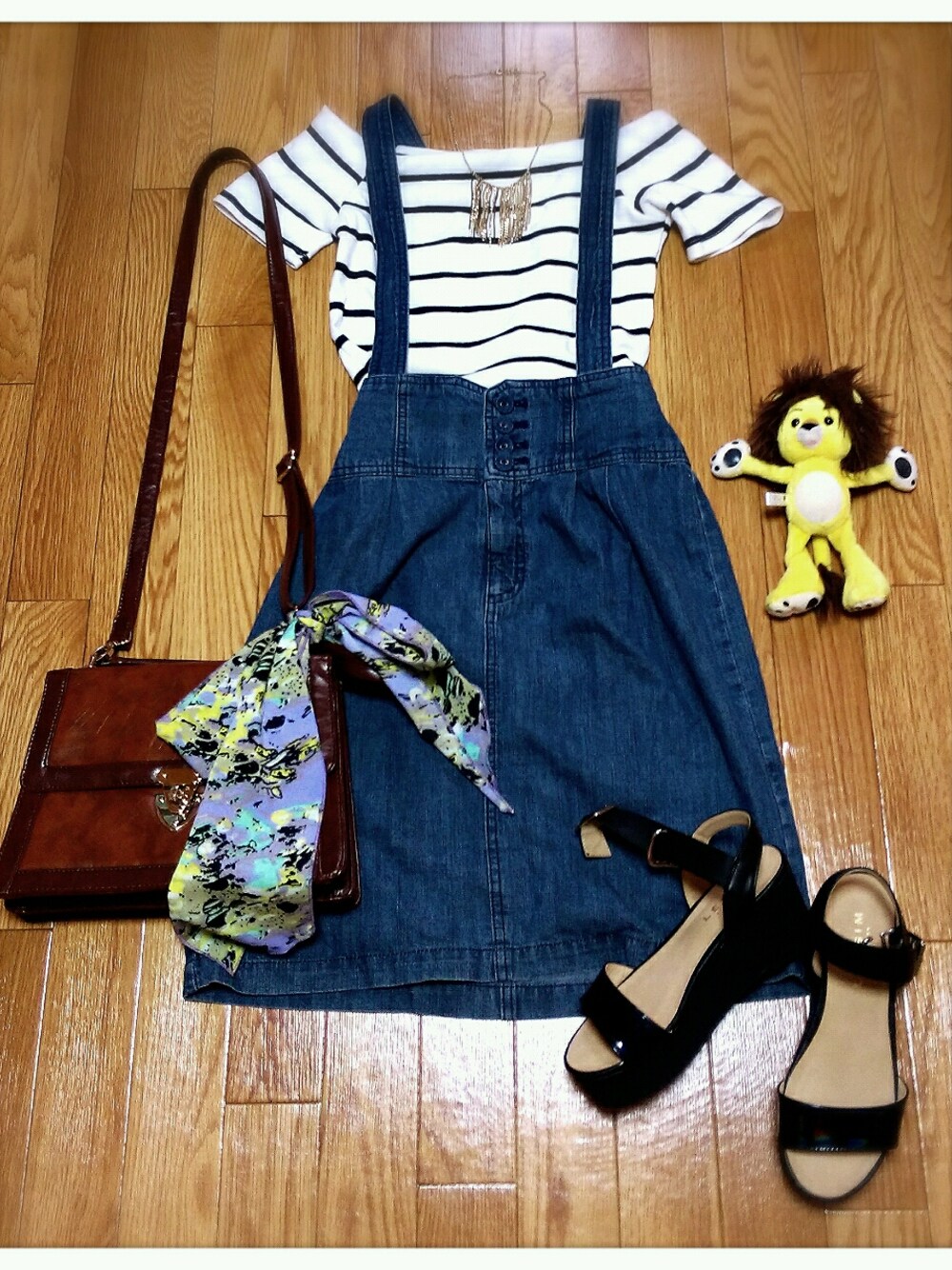 トップス☞SHAKE SHAKE ネックレス☞E hyphen world gallery スカート☞ROPE' PICNIC サンダル☞LEPSIM バッグ☞no brand ぬいぐるみはラルクのkenさんのグッズのべべちゃん(๑´ω`๑)♡