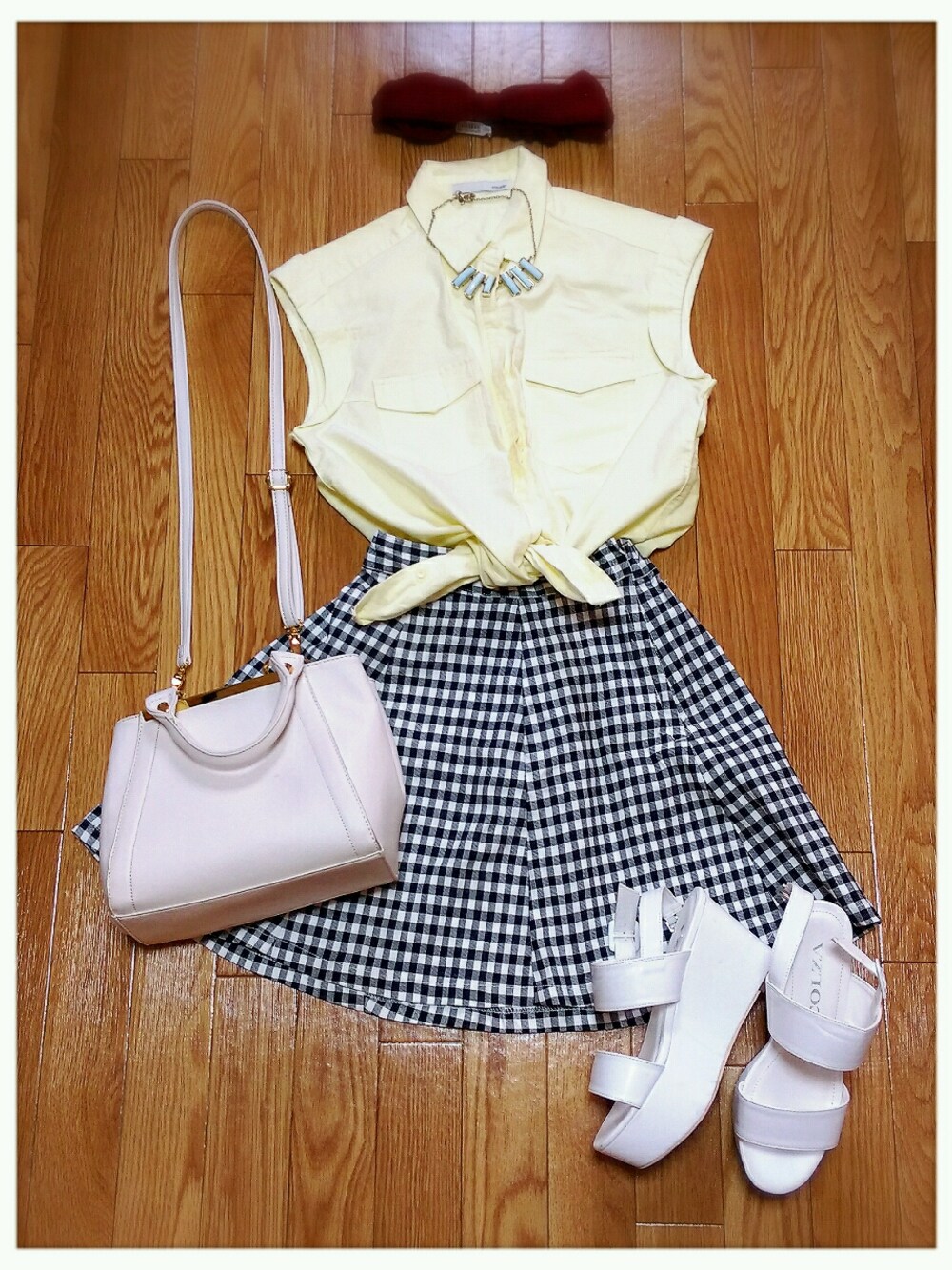 シャツを前結びにしてギンガムチェックとあわせてみました! なんか高校生っぽい笑 一年たったら若すぎて着れない気がする笑 このハニーズのサンダルはお気に入りです! 2500円くらいでかなり安かったので、黒も買いました。 似たようなサンダルをGRLでも買ったのですが、 そっちはヒール13cmなので、 歩く日☞honeys そんなに歩かない日☞GRL って使い分けてます! なんか全体的に薄かったからボルドーのヘアバンドを入れると、キティーちゃんみたいになった(ミ・。・ミ)♡ ヘアバンド、ネックレス☞Lattice シャツ☞moussy バッグ☞PAGEBOY サンダル☞Honeys スカート☞no brand