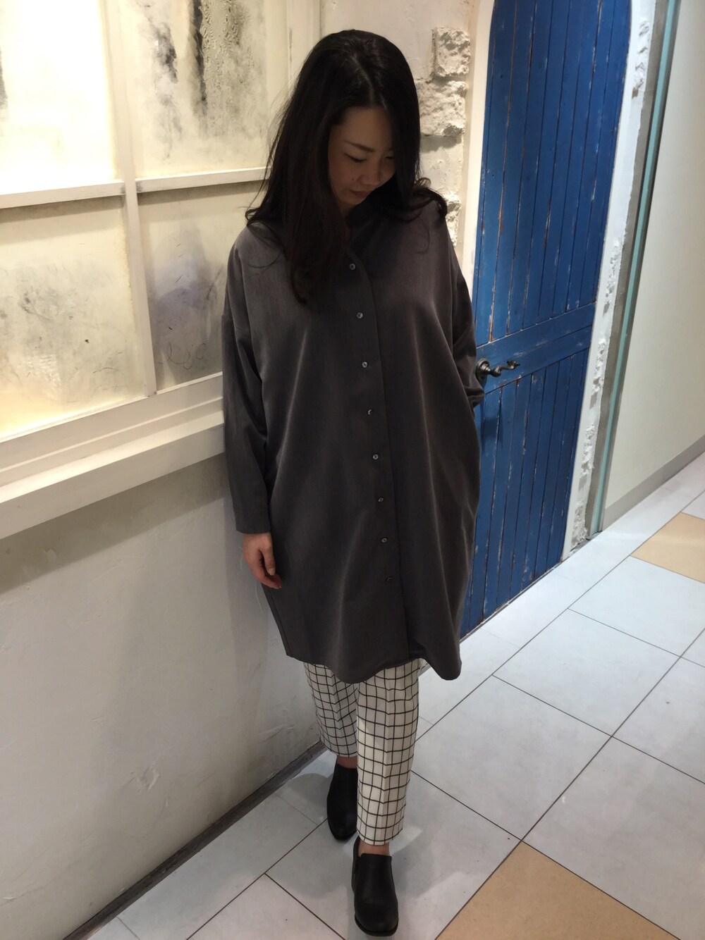 今日はベネシャンワンピースをご紹介します。 ベネシャンワンピース etre nne (エトレンヌ) 素材 :ポリエステル60% レーヨン35% ポリウレタン5% プライス 11,000+税 カラー:グレー・チャコールグレー・ブラック ビッグシャツワンピース。ゆったりシルエットで、リラックスした着こなしが楽しめます。女性らしい肩のラインを演出してくれるドロップショルダーデザイン。 羽織ものとしても使えます。貝調ボタンがさり気なくアクセントに。カラーは3色展開です(^-^)/