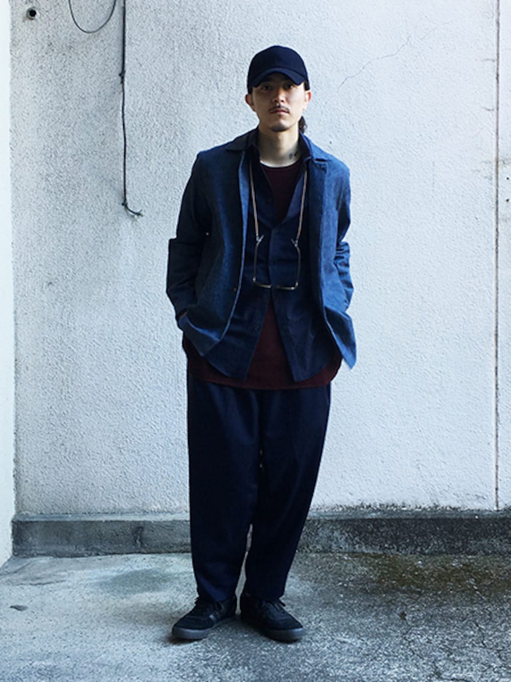 ----------------------------------- ・shirt (outer) 【Edwina Horl】 BUTTON DOWN SHIRT NAVY ----------------------------------- ・shirt (inner) 【house of the very island's】 CLASSIC CUT SHIRT DARKBLUE ----------------------------------- ・inner 【Edwina Horl】 LONG SLEEVE TEE SHIRT BROWN ----------------------------------- ・pants 【house of the very island's】 LOOSE CUT TROUSERS DARKBLUE ----------------------------------- ・cap 【REALITY STUDIO】 Michel cap NIGHT ----------------------------------- ・glass cord 【Hender Scheme】 glass cord NATURAL ----------------------------------- ・eyewear 【MYKITA + Maison Margiela】 RAW002 Peridot