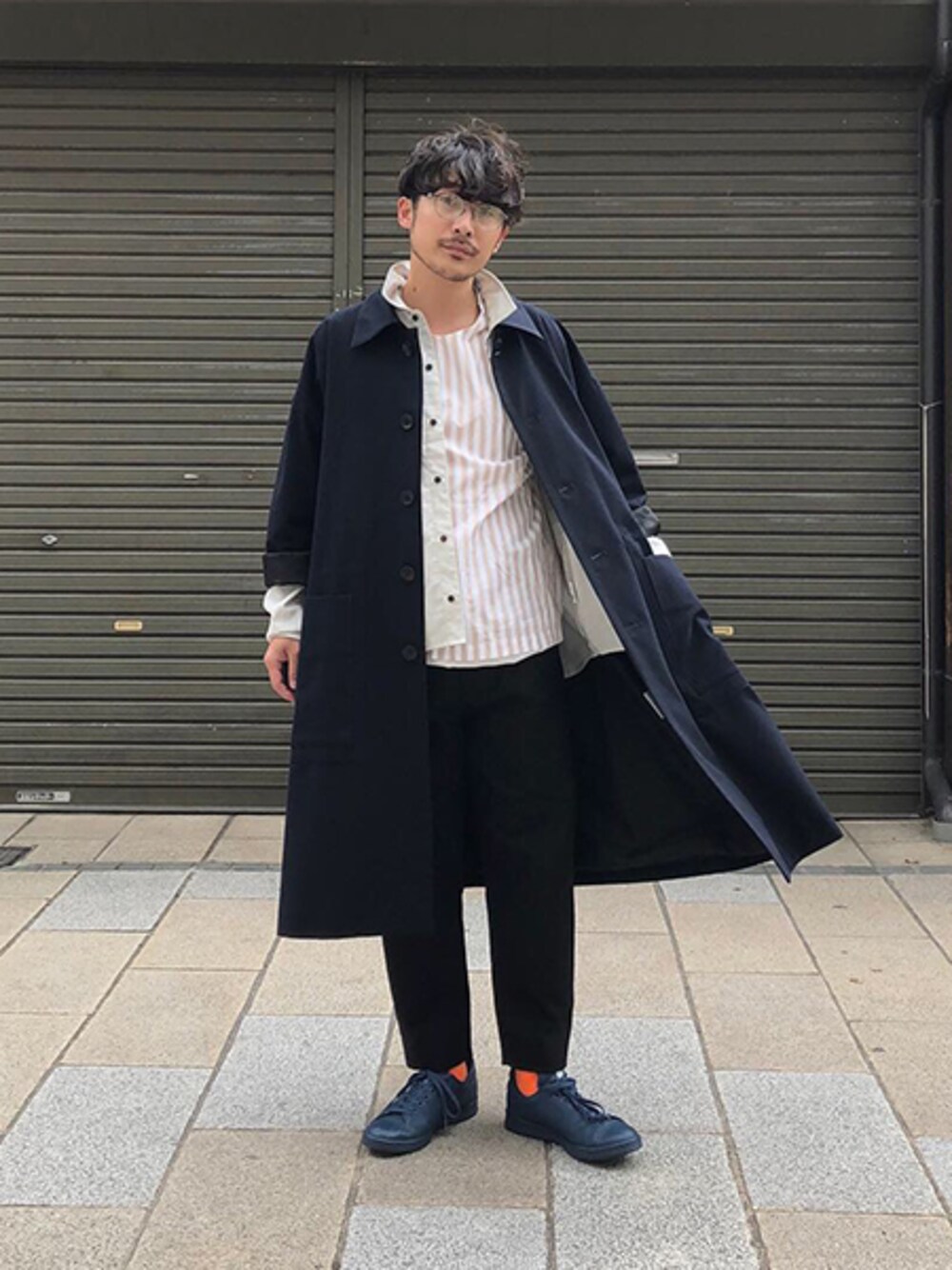 ----------------------------------- ・coat 【VOAAOV】 long coat NAVY ----------------------------------- ・shirts 【O project】 REGULAR FIT SHIRTS LT GREY ----------------------------------- ・inner 【FFIXXED STUDIOS】 model personal property ----------------------------------- ・pants 【SHINYA KOZUKA】 WORK TROUSERS BLACK ----------------------------------- ・eyewear 【MYKITA】 model personal property