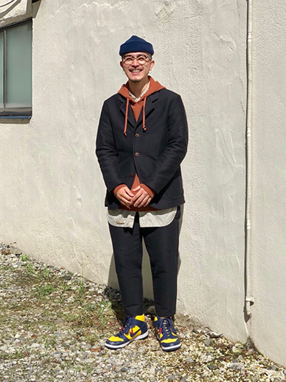----------------------------------- ・jacket 【tim.】 3B jacket black ----------------------------------- ・sweat 【COLTESSE】 Hoodie Sweat Red Brown ----------------------------------- ・pants 【tim.】 tapered pants black