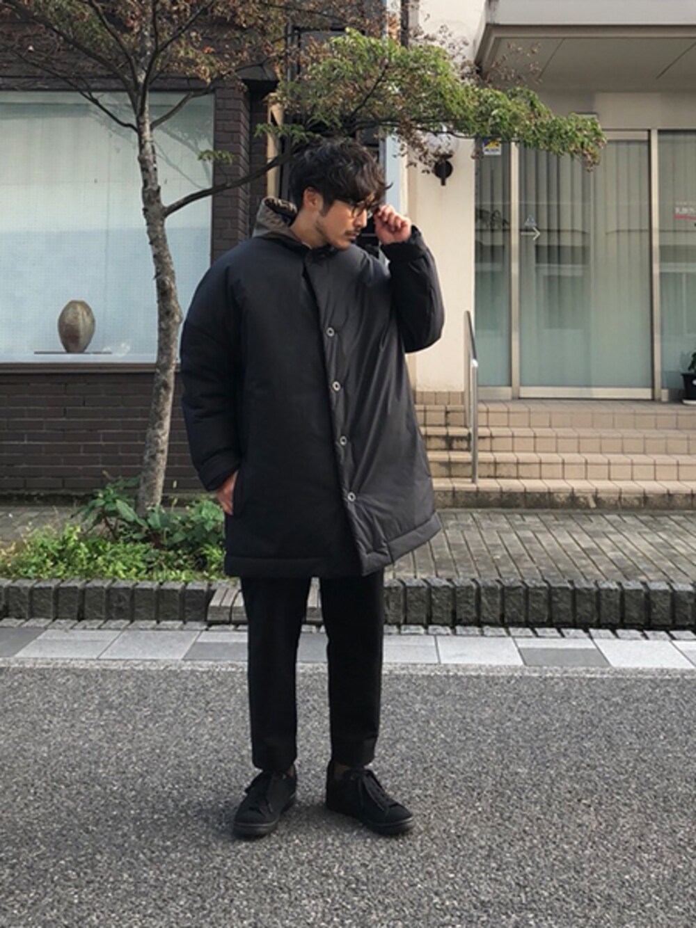 ----------------------------------- ・coat jacket 【SHINYA KOZUKA】 WINTER WORKER BLACK ----------------------------------- ・inner 【O project】 HOODED PULLOVER JACKET MUD CHINTZ ----------------------------------- ・pants 【SHINYA KOZUKA】 WINTER WORKER BLACK ----------------------------------- ・shoes 【Impossible Possibility】 SNEAKER BLACK ----------------------------------- ・eyewear 【MYKITA + Maison Margiela】 model personal property