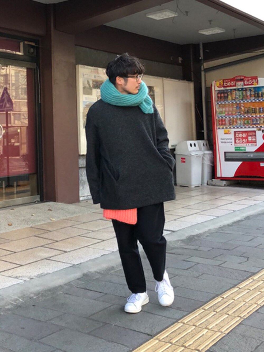 ----------------------------------- ・outer 【VOAAOV】 switching big knit CHARCOAL ----------------------------------- ・pants 【tim.】 tapered pants black ----------------------------------- ・scarf 【REALITY STUDIO】 BIG PLAID SCARF GREEN & CORAL ----------------------------------- ・eyewear 【MYKITA + Maison Margiela】 model personal property