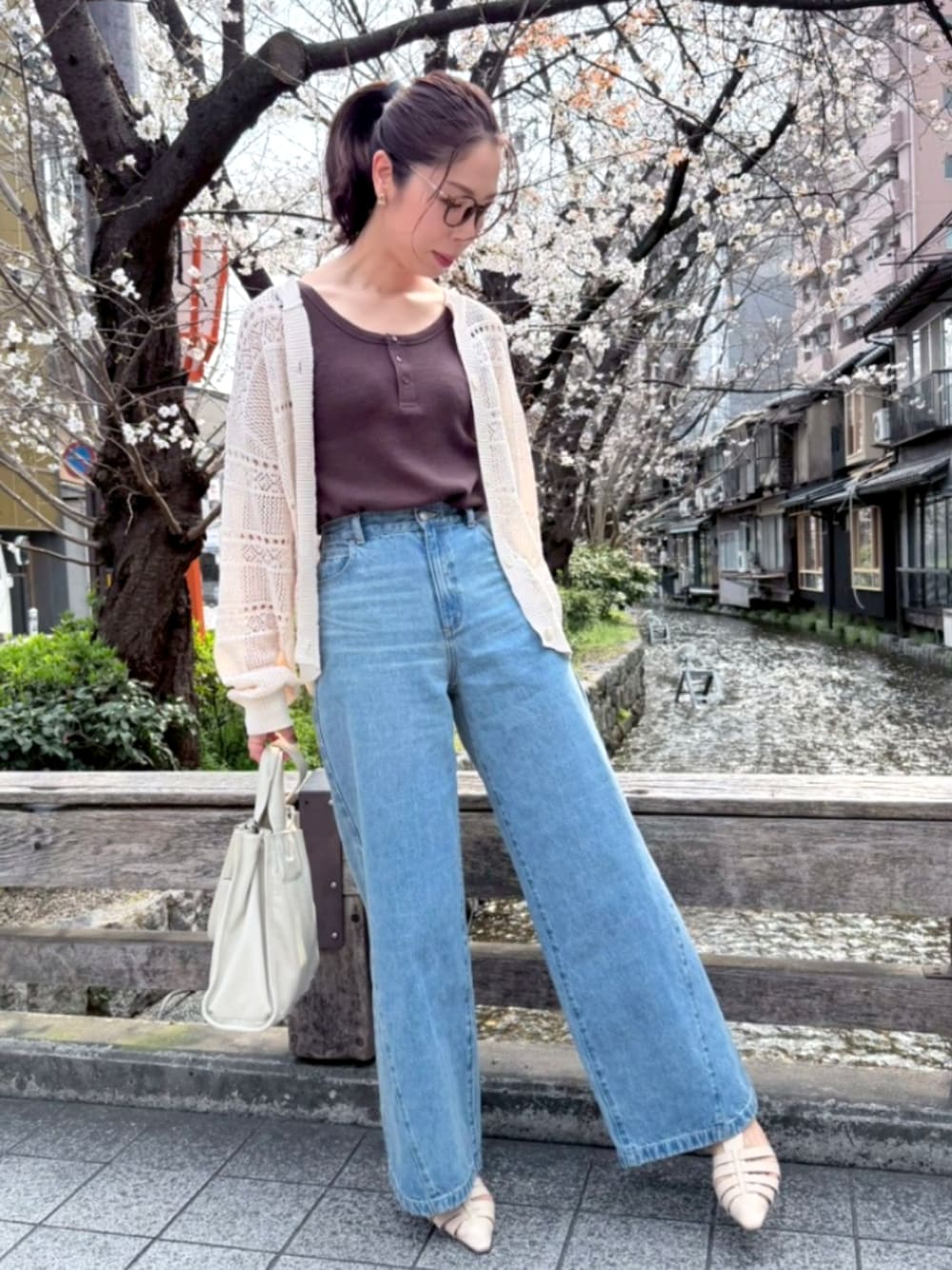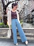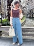 タンクトップはボトムインして脚長を強調したコーデにしました。 173cmでパンツは64TT、トップスとカーディガンはいずれもMTT着用しています。