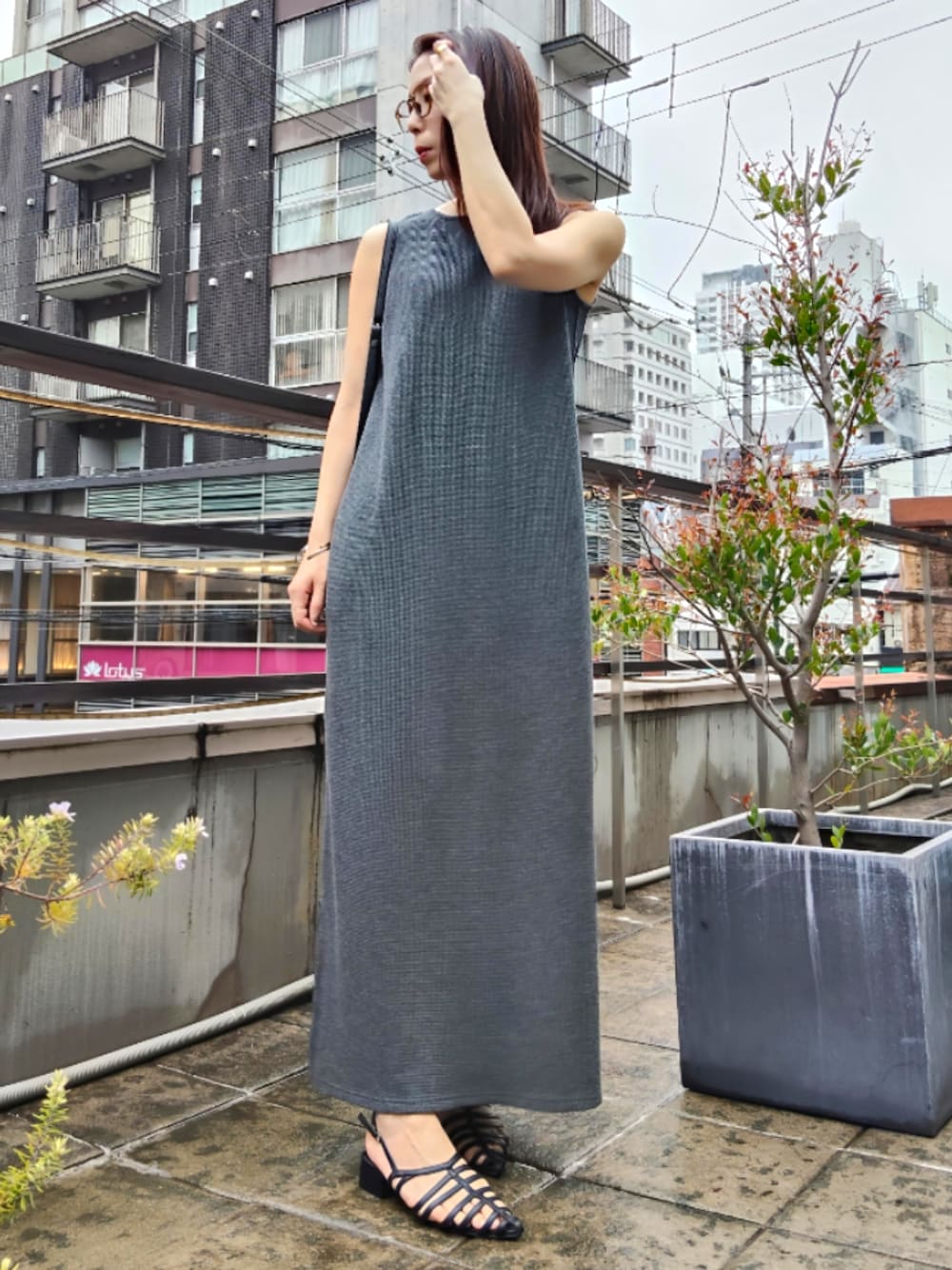 rei(nissen本店)のワンピース「高身長 綿100%ドライワッフルノースリーブワンピース(トールサイズ)」を使ったコーディネート