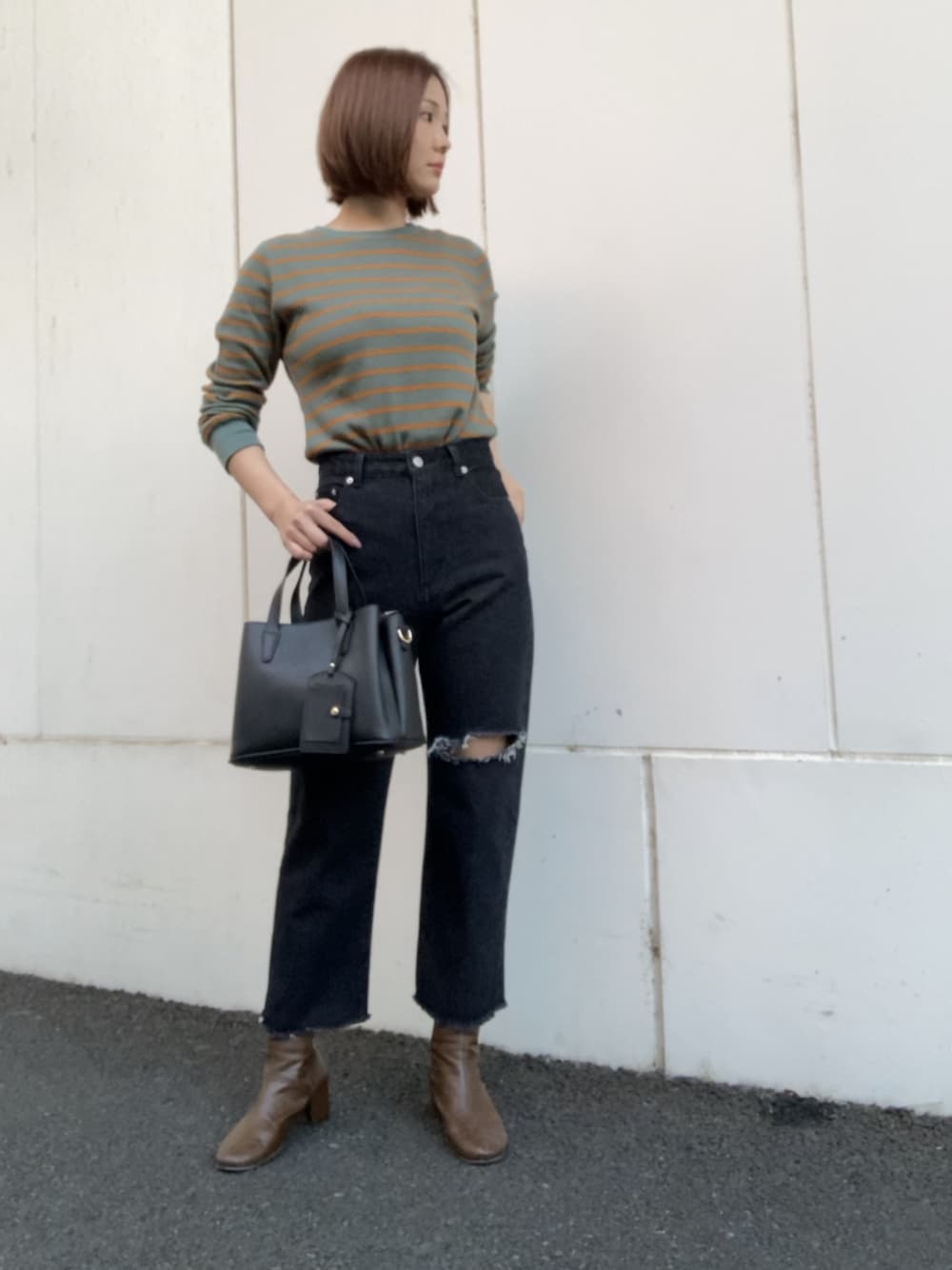 ダメージデニムは思ったより空いている部分が狭いのでセクシーすぎず、履きやすいです! タイトめなトップスとの相性バッチリでした✨