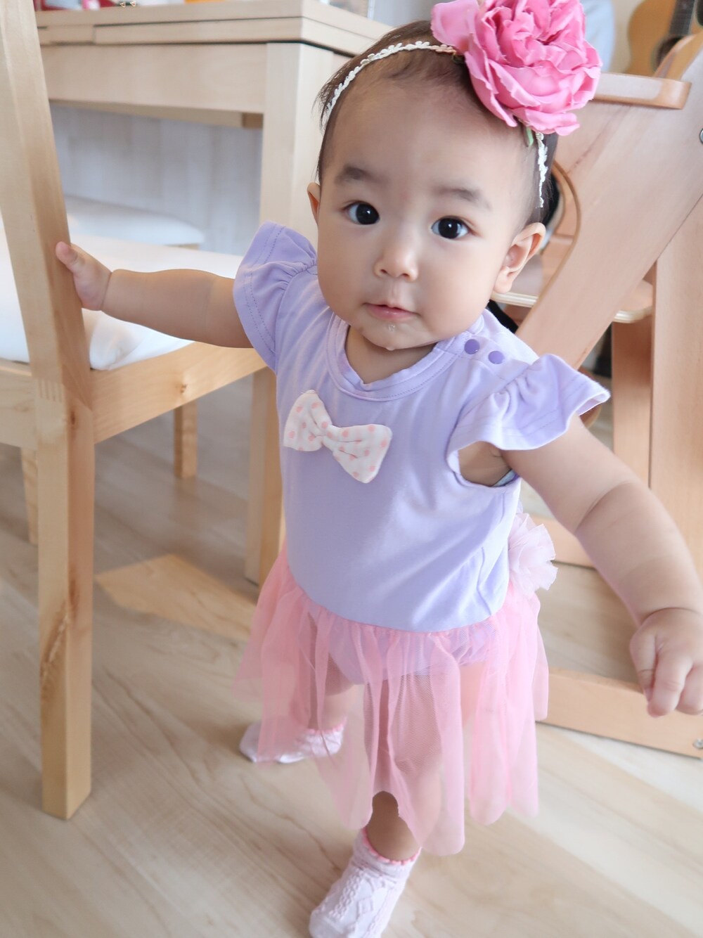 ♡ キャリーパミュパミュに憧れコーデ ♡ ファンシーぽー(°▽°)✨ 完全に着せ替え人形のようになってて楽しい笑 panpantutuのいただいたロンパース💕 頭に何もないのは坊主すぎるから、お花つけたらピアノの発表会とか行けそうになった ♬ 🌺🎶 女の子だしピアノ習わせたいなー ♪♪