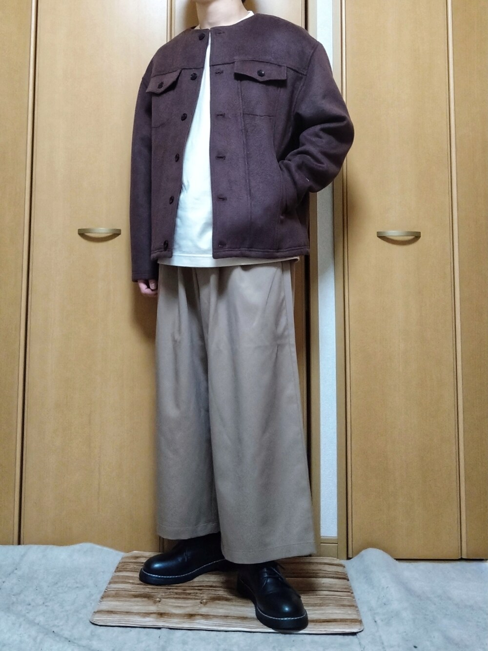 閲覧ありがとうございます!! 【コーデ説明】 今回はカバーオールジャケット、ロンT、ワイドパンツを使ったぽっちゃりさんやガタイのいい方向けのコーディネートです。 硬めの素材のガッチリしたジャケットや、ワイドパンツを合わせることで、体型を隠すことができます。 また、今回は暖色で合わせてしまいましたが、暗い色を合わせるとより引き締めることができます。 【サイズ】 身長:170cm 体重:64kg Men's ジャケット L Men's ロンT L Men's パンツ M 足のサイズ 26.5 スニーカーサイズ 27.0〜27.5 革靴サイズ 26.5 他の投稿も見てくださると嬉しいです!!