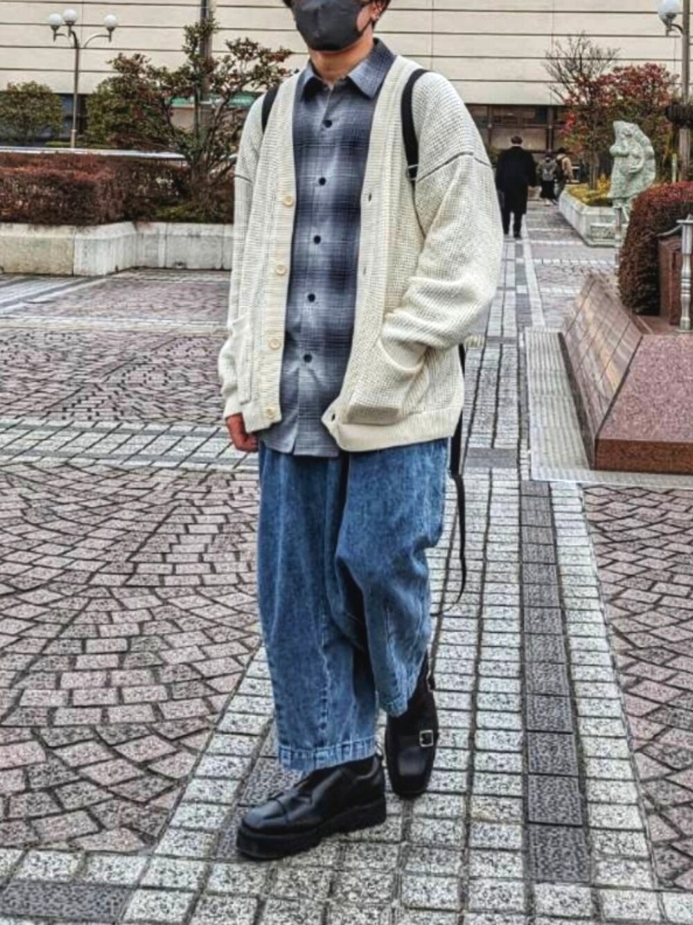 閲覧ありがとうございます!! 外が予想以上に寒くてびっくり… 【コーデ説明】 今回はカーディガン、チェックシャツ、ワイドデニムを使った春のお出かけコーデです。 かわいらしいアイテムを使いながら、リュックや靴の装飾やアクセサリーなどのメタルチャームでかっこよさをプラスした甘辛MIXコーデです。 シャツ×カーディガンの組み合わせで、色彩はブルー×ホワイトなので、清潔感があり、デートコーデにも向いています。 【サイズ】 身長:170cm 体重:64kg Men's カーディガン XL Men's シャツ M Men's パンツ M 足のサイズ 26.5 スニーカーサイズ 27.0〜27.5 革靴サイズ 26.5 他の投稿も見てくださると嬉しいです!!