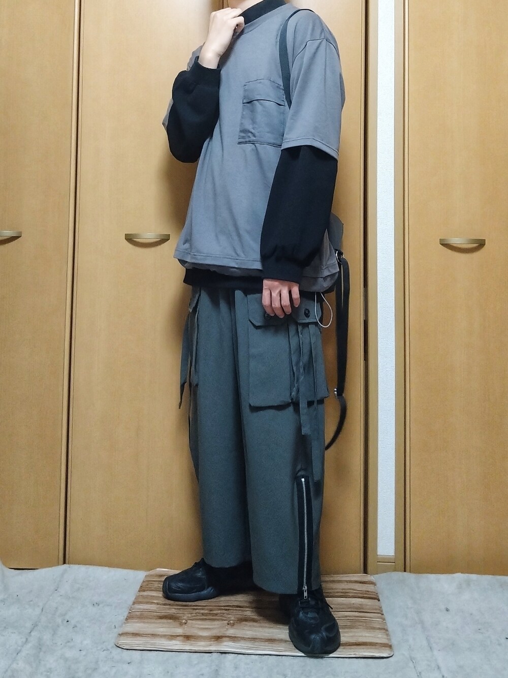 いつも閲覧ありがとうございます!! ミリタリー×モード×ストリート🔫 Tシャツとパンツの形がミリタリー、全体のシルエットや色彩や素材がモード、着こなしや靴がストリートなテイストのコーディネートです。 レイヤード部分やパラシュートスラックスのジップ部分や靴、リュックのベルトなどに散りばめられた黒がお気に入りです✨ 色彩は落ち着いていますが、かなり遊びのあるコーディネートなので、春らしいカジュアルな印象が出せています。 【着用サイズ】 Tシャツ L ロンT L パンツ M ----------------------------------- 現役男子高校生(17) 170 cm / 64 kg Instagramもよろしく📷→→→sota_wear_23 ----------------------------------- 質問等あればコメントまたはInstagramのDMまで📨 ではまた明日👋