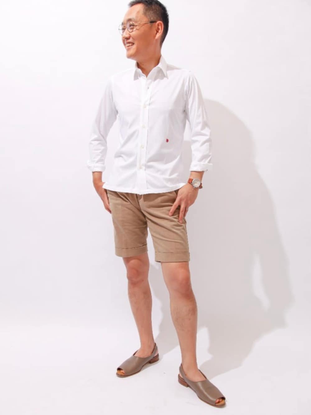 暑いので 今日は短パン! 短パンの肝は・・・ 1)長さ 2)シルエット 長さは膝上 シルエットは細身 これだけで 短パン姿が激変します!