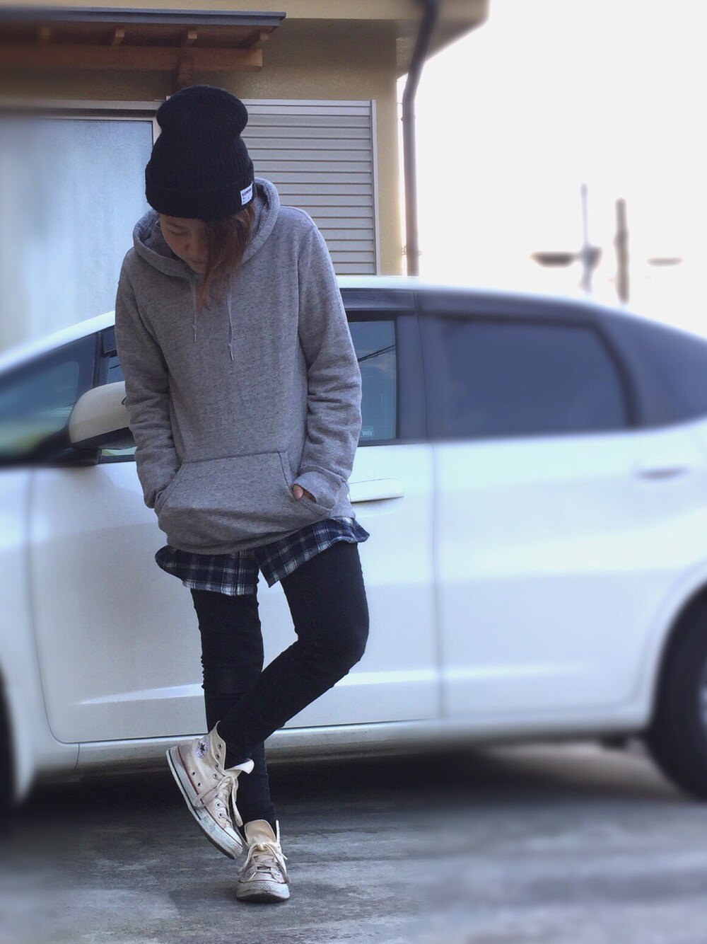 しまむらで好みの色合いのチェックのロングシャツを見つけて購入〜 腕が長いらしい私には少し袖が短い…けど許容範囲かな😅なんせこういう色合いのをわりと探していたので!!! 早速パーカーの下に重ねてみました〜 今日は風が強くてニット帽飛ばされそうでした!🍃👒
