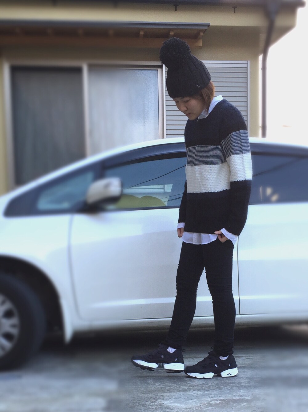 yumi*のスニーカー「Reebok リーボック INSTAPUMP FURY OG インスタポンプフューリー OG V65750 BLACK/WHITE 」を使ったコーディネート