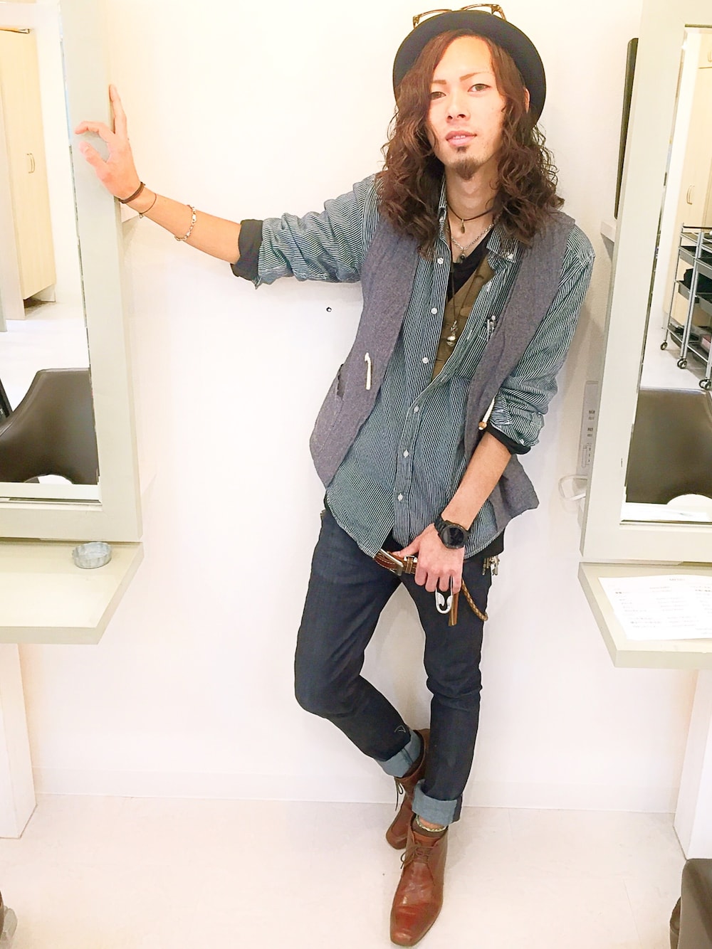 今日はストライプのシャツに、細身のパンツ、ジョージブーツを合わせてスタイリッシュに!笑