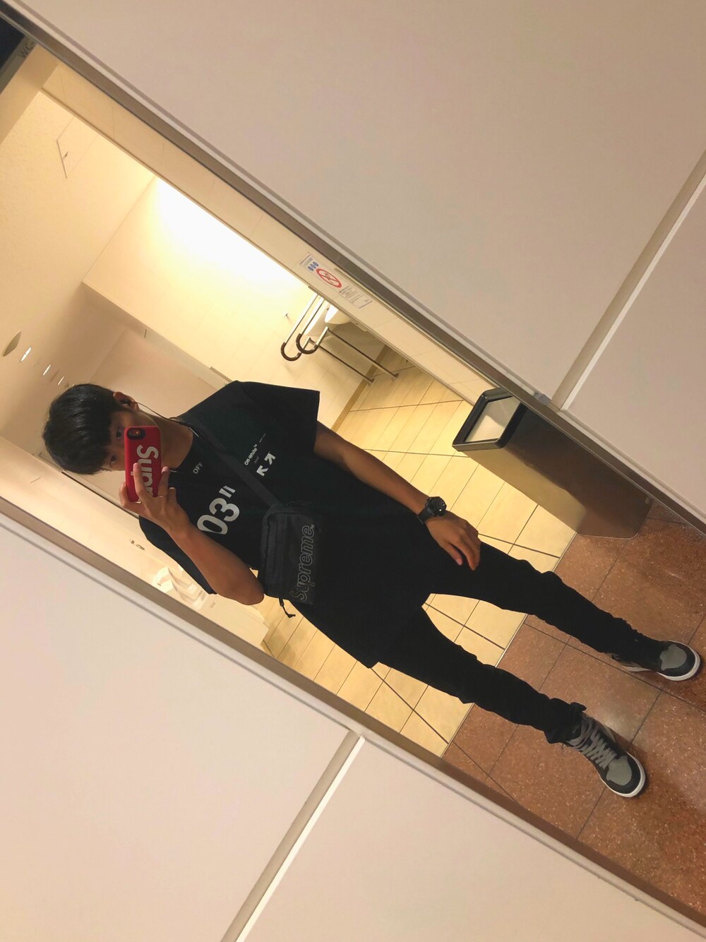 off whiteデビュ〜 シンプル is the ベスト shadowは一番お気に入りの靴 supremeのショルダーとスマホケース使い勝手がとても良い