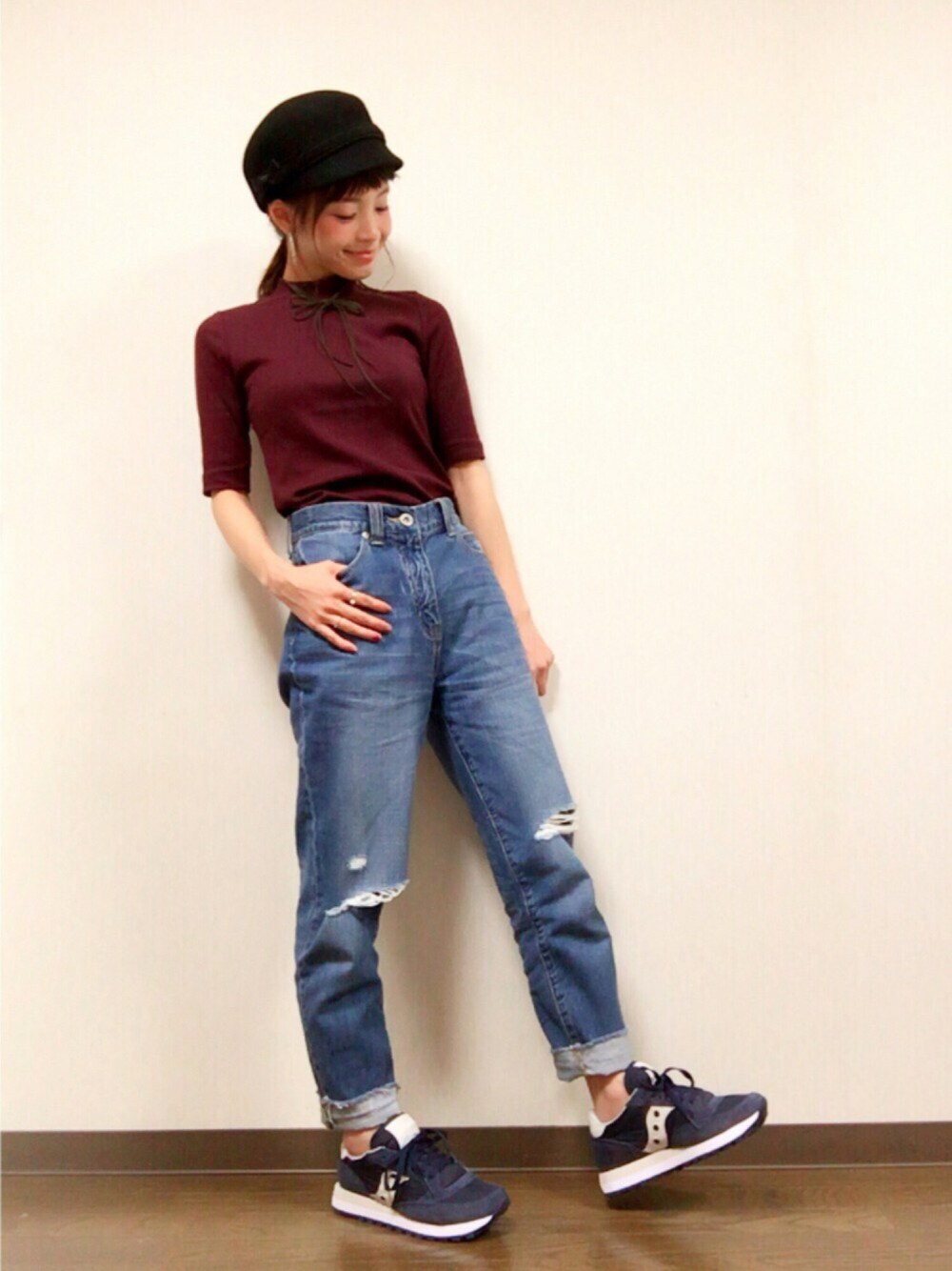 おはようございます ◎ 新しいsaucony届きましたー! サッカニー気になるけど色迷うな〜って方におすすめ✨ ベーシックカラーのネイビーです! これは間違いなく合わせやすいしかわいい🙈💓 ネイビーとグレージュの靴ひもがセットでついています👟 UNIQLOのリブTはワインカラーを買いました◎ 秋っぽくてきれいな色〜🍷♡ インポートショップで見つけたスウェードのチョーカーは チャコールグレーなので黒よりも主張しすぎない感じがよい!🙆🏼✨ ♡、セーブ、フォローなど いつもありがとうございます😌❤️
