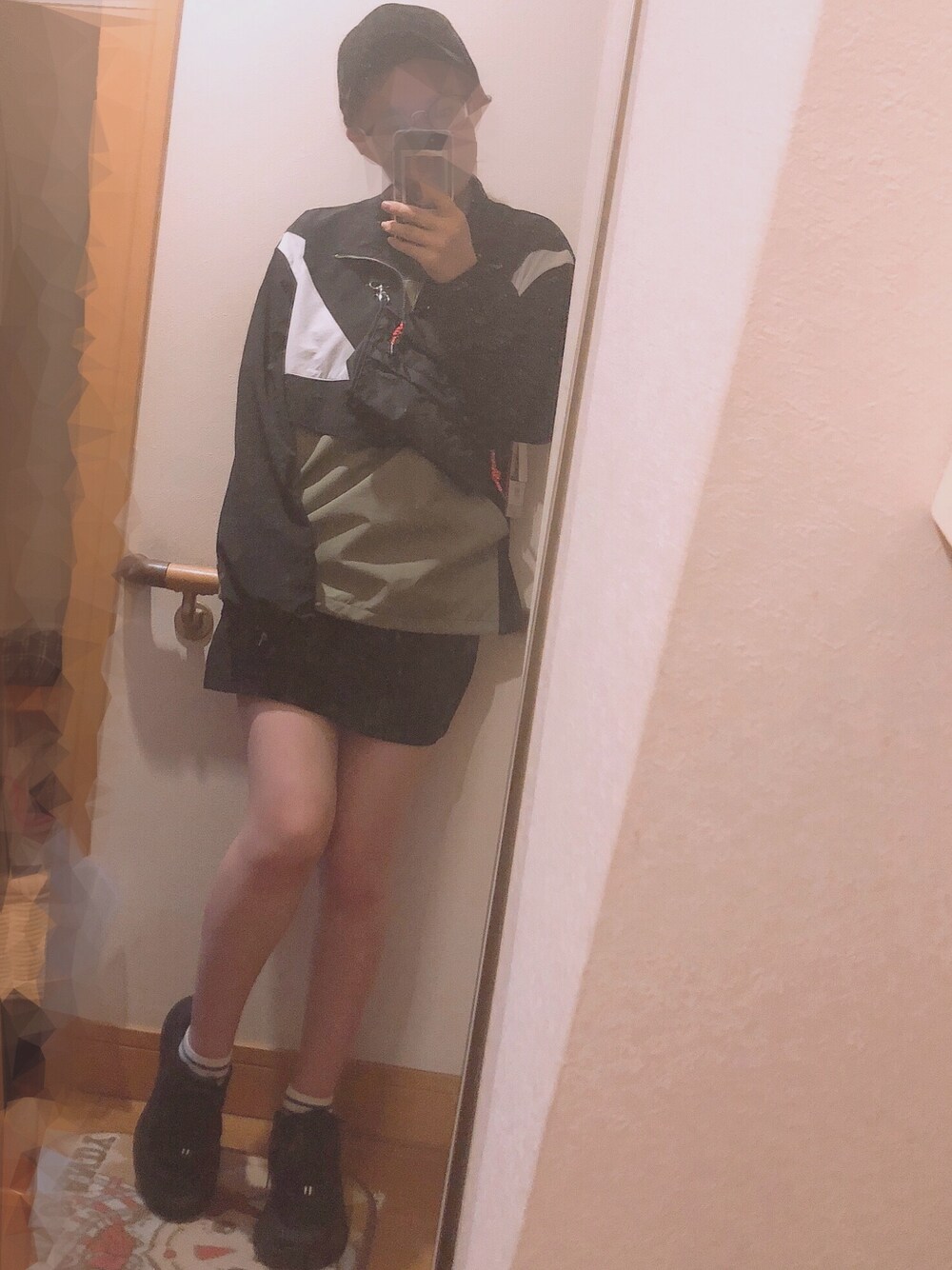 今日から気ままにWEAR始めました ホカオネオネで脚長く見せかけないと履けないミニスカート、背が欲しいです