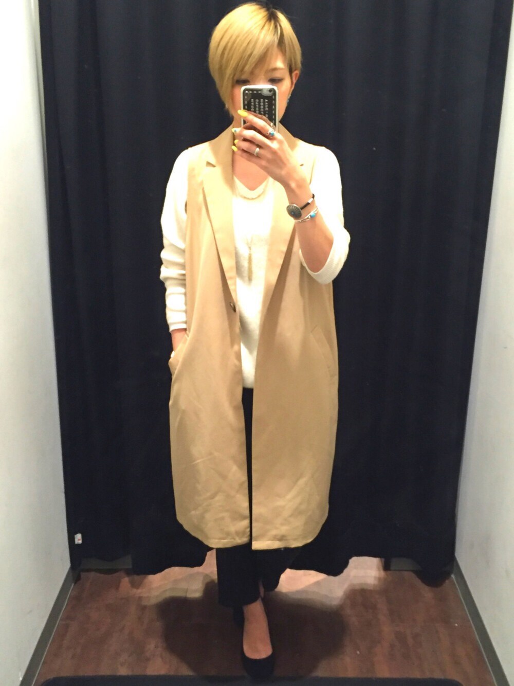 ドルマンニットの羽織にはベストが1番着やすい(^.^)♩でもそろそろニットも暑くなってきたなぁ🌞