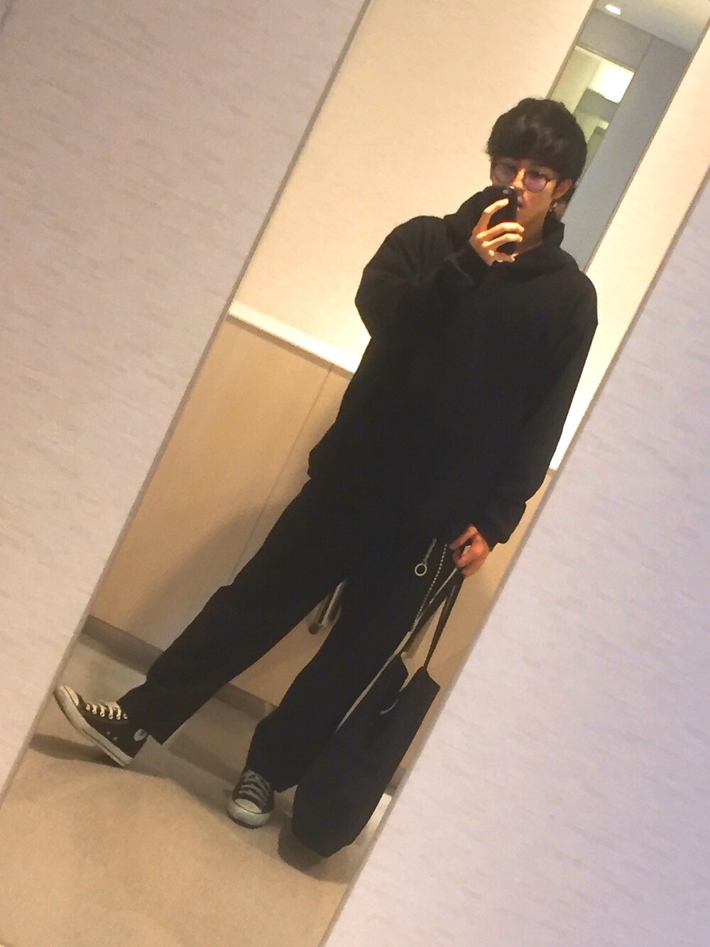第4回 今回はユルユル中のユルユルコーデです。 体にストレスのない服いい感じですね👍 パーカーを着始めると「あ、もう秋か。」 とみんな思いますよね!思いますよね! コーデ解説 今日はオールブラックだったので 腰元にウォレットチェーンで区切りをつけただけです! あとはなるべくユルユルに!って感じです! 第4回目の投稿は以上です。