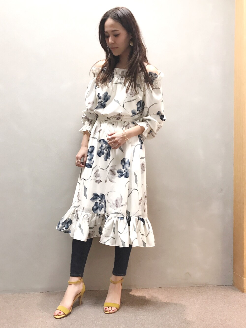 オフショルワンピをデニム合わせでカジュアルに👖 アクセサリーはゴールド ぜんぶRANDAです〜〜〜