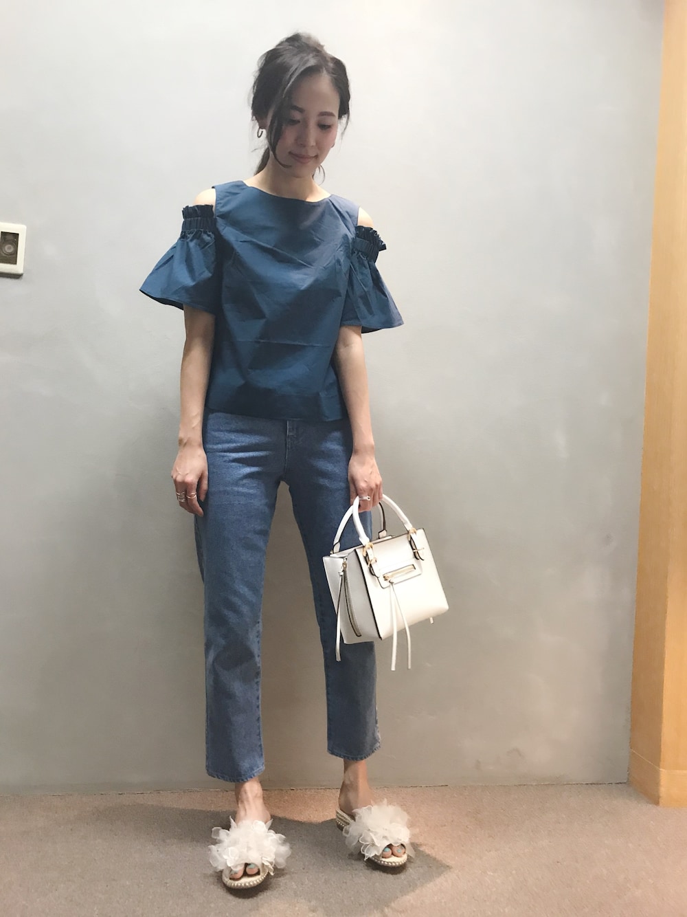 IMAEDA2のシャツ/ブラウス「オープンショルダーフリルトップス」を使ったコーディネート