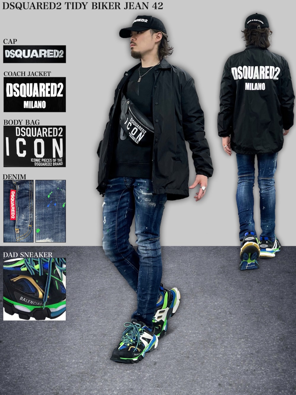 飲み帰りに撮ったやつ お忙しい中ご覧頂きありがとうございます。 また、前回投稿をいいねやお気に入り、嬉しいタイトルのフォルダの仲間に加えて頂き心より感謝いたします🙇♂️ 【コーデのポイント】 ストリート ●BALENCIAGA ダッドスニーカー ┗[ Volume & Street ] 青を拾う形でデニムを馴染ませました。 ・コーチジャケット ┗Yラインの形成 ∴ 足元の安定化 ・刺繍ロゴ (キャップ) ・プリント (バッグ) ┗白配置による安定化&ロゴ推しストリート ◎DSQUARED2 クラッシュデニム 蛍光グリーン&ブルーを ペイントでさり気なく拾うのがポイントです。 【所感】 コーチジャケットinボディバッグで ちょっとモコっとしてるのが気に入らないんだけど、 まぁ良いやと飲みに出かけました(雑) 私のリアルはこんなもんです。 バレンシアガのミーハー感(もう古いけど)を 前後のDSQUARED2ロゴで全力で打ち消しました(笑) ボディバッグにはiQOSが入ってるだけ。 普通に邪魔ですね❗️ 皆さんも良い一日をお過ごしください🙋♂️✨