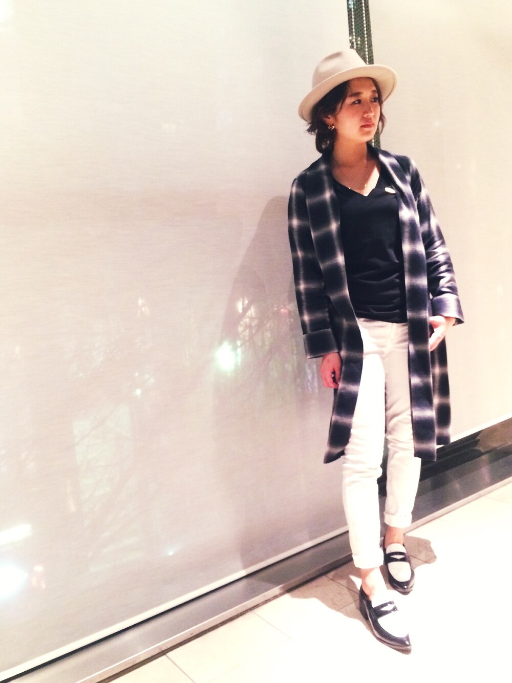 【本日のスタッフ】 今日のポイントはチェック柄のローブ! 存在感のあるアイテムなので中はシンプルに。 imaii staff stylist YUKI KOBAYASHI