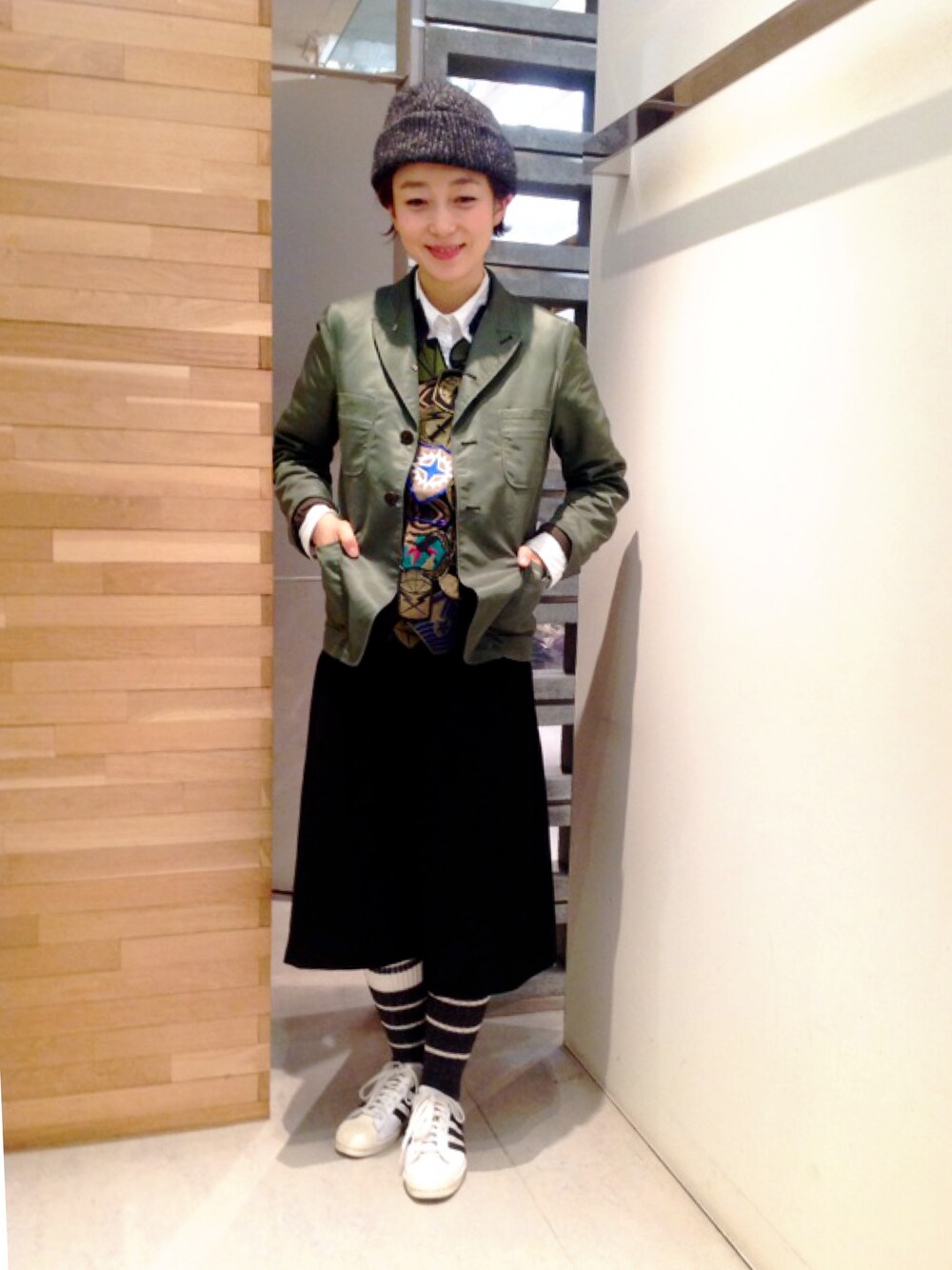 ワッペンベストがポイント! カーキ、グレーでまたシックに!