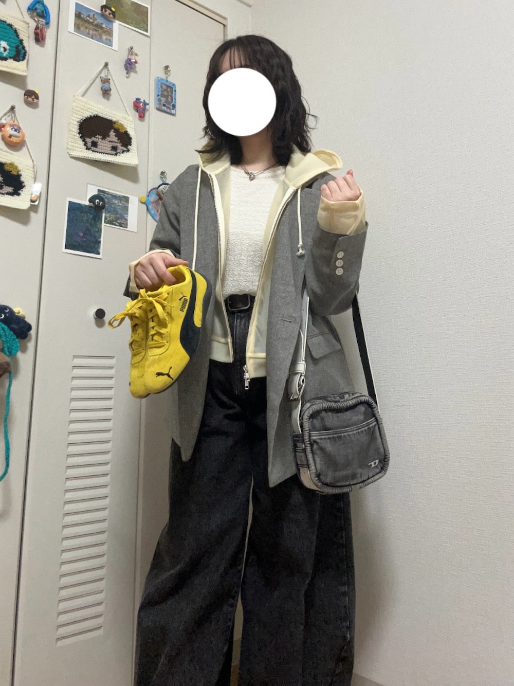 黄色を差し色にして、レイヤードコーデを組んでみました(^_^)!! 新しくゲットしたジャケットとシアーのパーカーの組み合わせが可愛すぎてお気に入りです🆕✨ 最近やっとゲットしたspeedcatのイエローとシアーパーカーのイエローで統一感を出してます✊🏻🌟 まだまだ外は寒いので、この上からモンスターコートを羽織りました(^ν^)