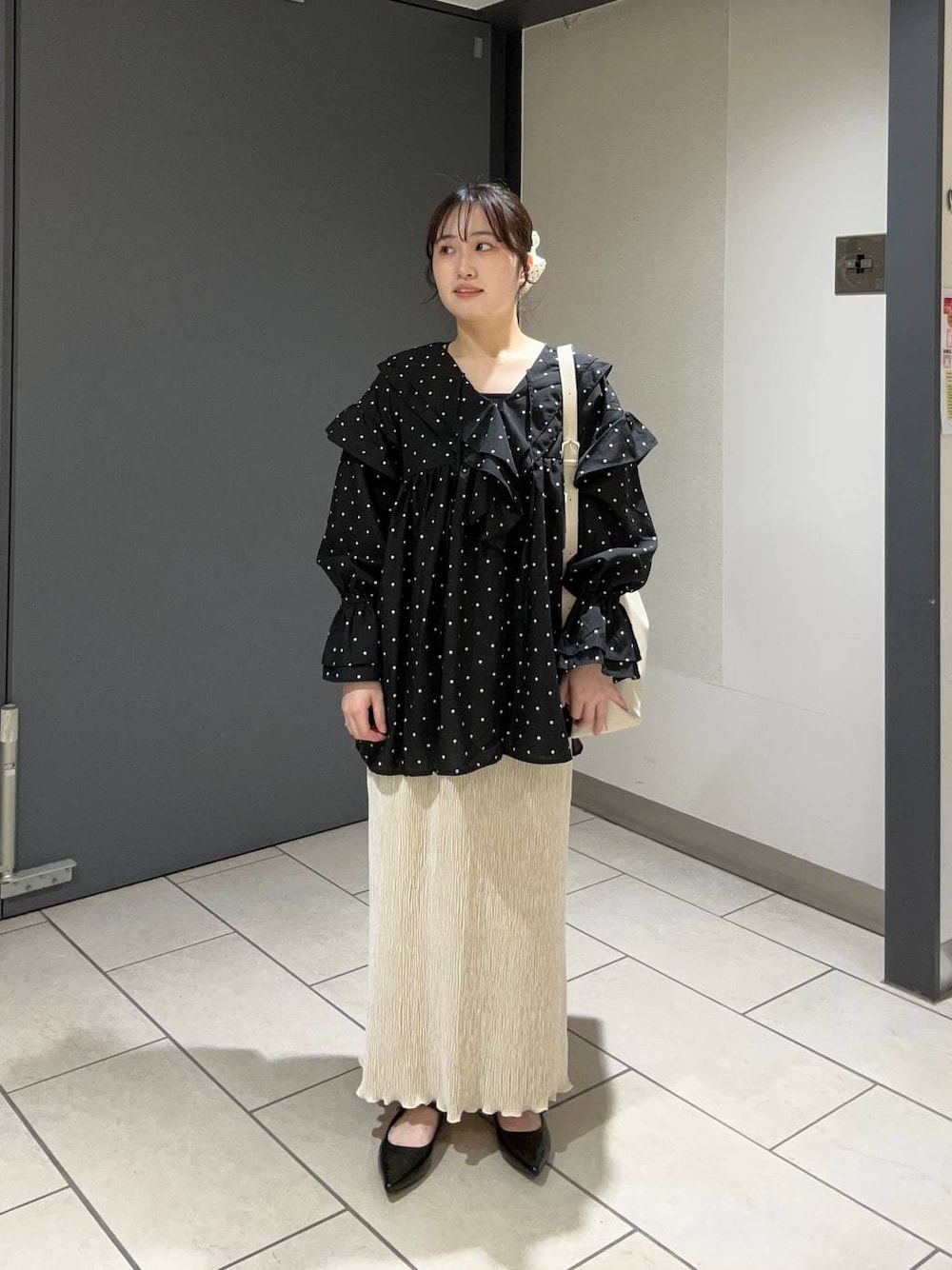 可愛すぎるドット×フリルブラウスで甘めコーデ組んでみました🎀 最近見かけることが増えたドットアイテムですが、ローリーズファームにも沢山展開されています🎶 特に今回のコーデで着用しているシュシュとブラウスがイチオシです( ◠‿◠ )♡ ブラウスは前にボタンがついてるので、羽織としても着用していただけます🙆🏻♀️✨ 今回はベロアのタイトスカートと合わせてしっかり甘めに合わせてますが、サテンのスカートやスラックスと合わせた綺麗めコーデやデニムと合わせたカジュアルコーデもおすすめです🌠 ぜひフォロー、お気に入り、その他投稿のチェックも併せてよろしくお願いします⭐️