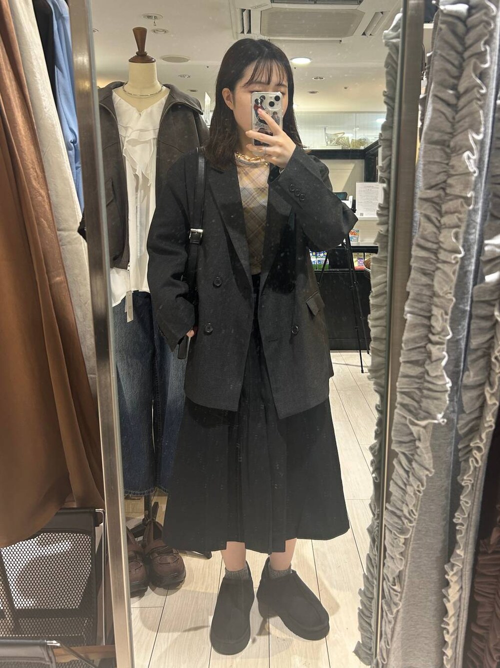 maiのテーラードジャケット「ラナテックダブルジャケット 455400」を使ったコーディネート