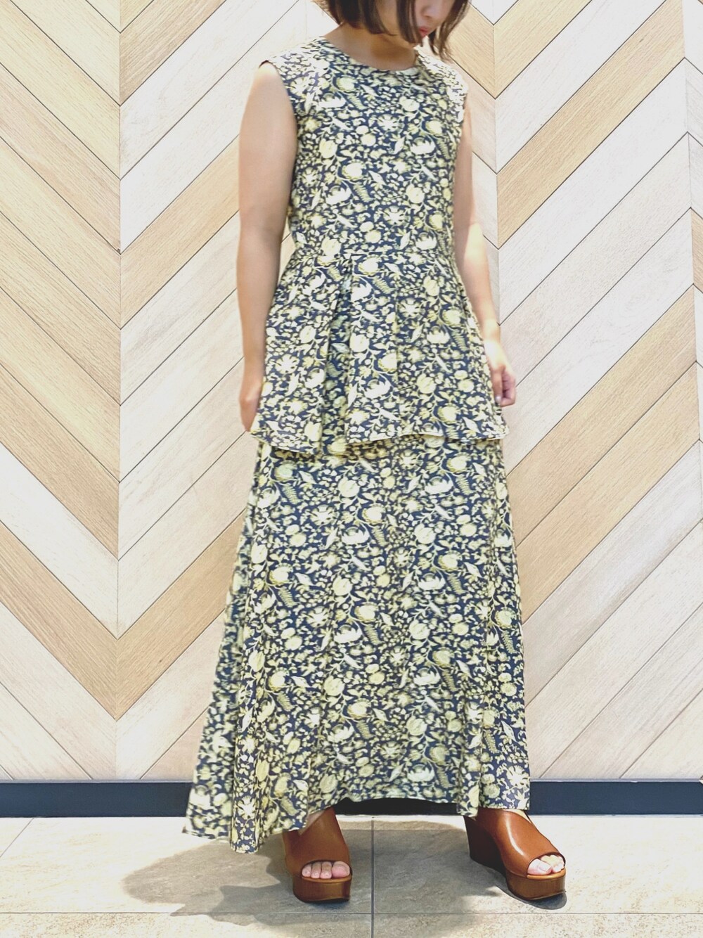 makoのシャツ/ブラウス「【セットアップ対応】リバティプリント裾フレアーノースリーブブラウス」を使ったコーディネート