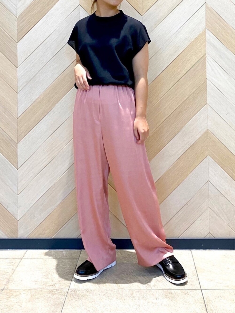 リラックス感のあるシルエットが 可愛いパンツを使用したコーディネート! ブラックのブラウスと合わせて 綺麗めな印象になるよう仕上げました◎