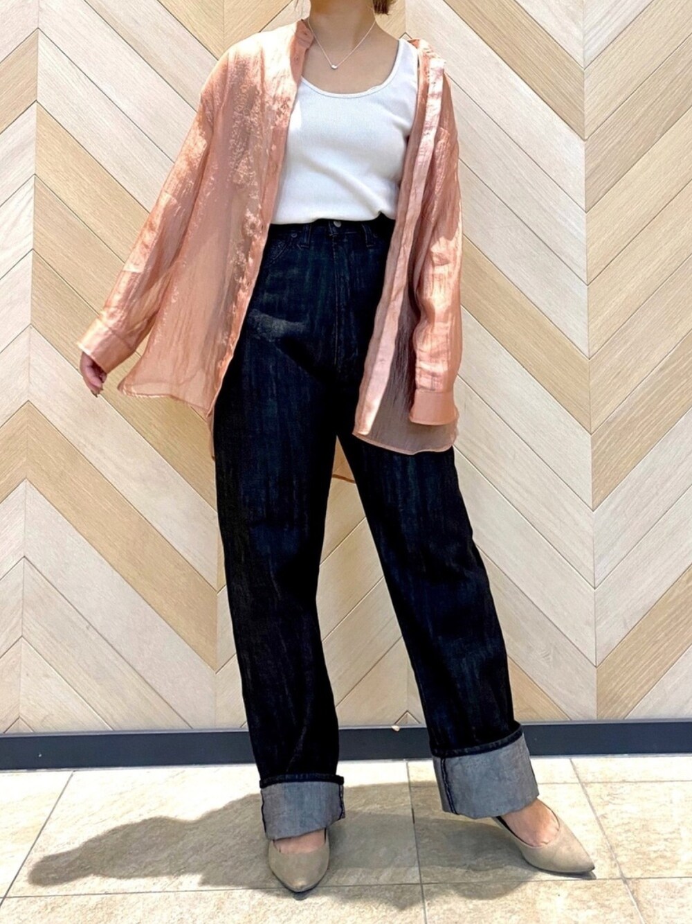 透け感が可愛いシャツコーデ👔 1枚羽織るだけで、 今年らしいお洒落なコーデに仕上がります! ツヤがあり綺麗めな印象になります◎