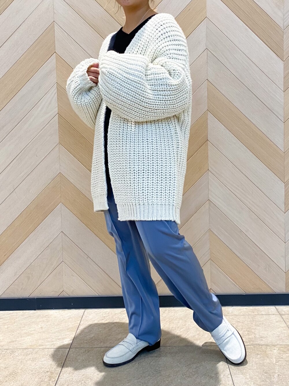 makoのカーディガン/ボレロ「ボリュームスリーブローゲージニットカーディガン」を使ったコーディネート