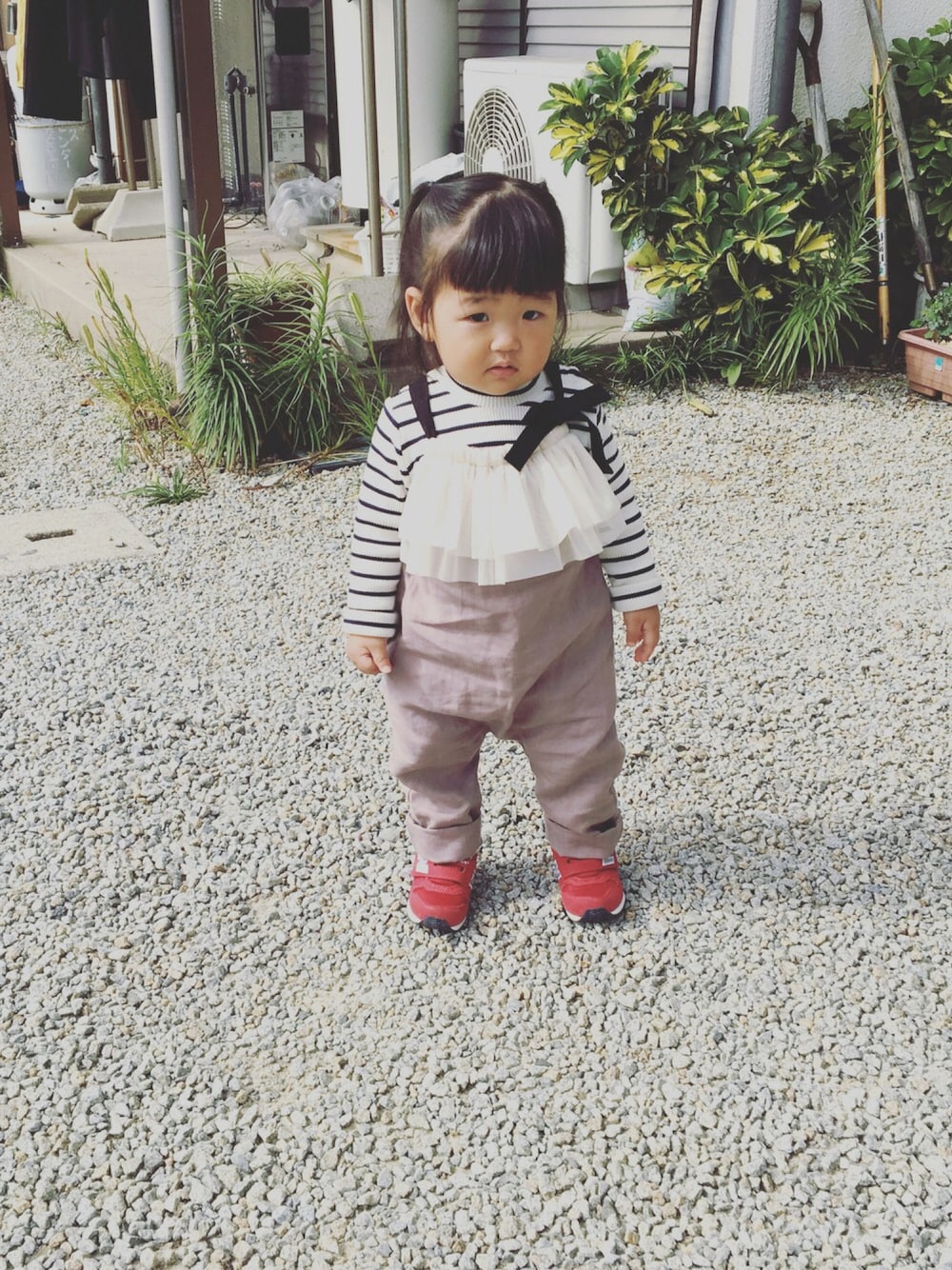 * 作家さんの手作りの サロペティーナ。 初めて着せたけど かわいすぎた\\\\٩( 'ω' )و //// そして安定の困り顔( ˘◦˘ )