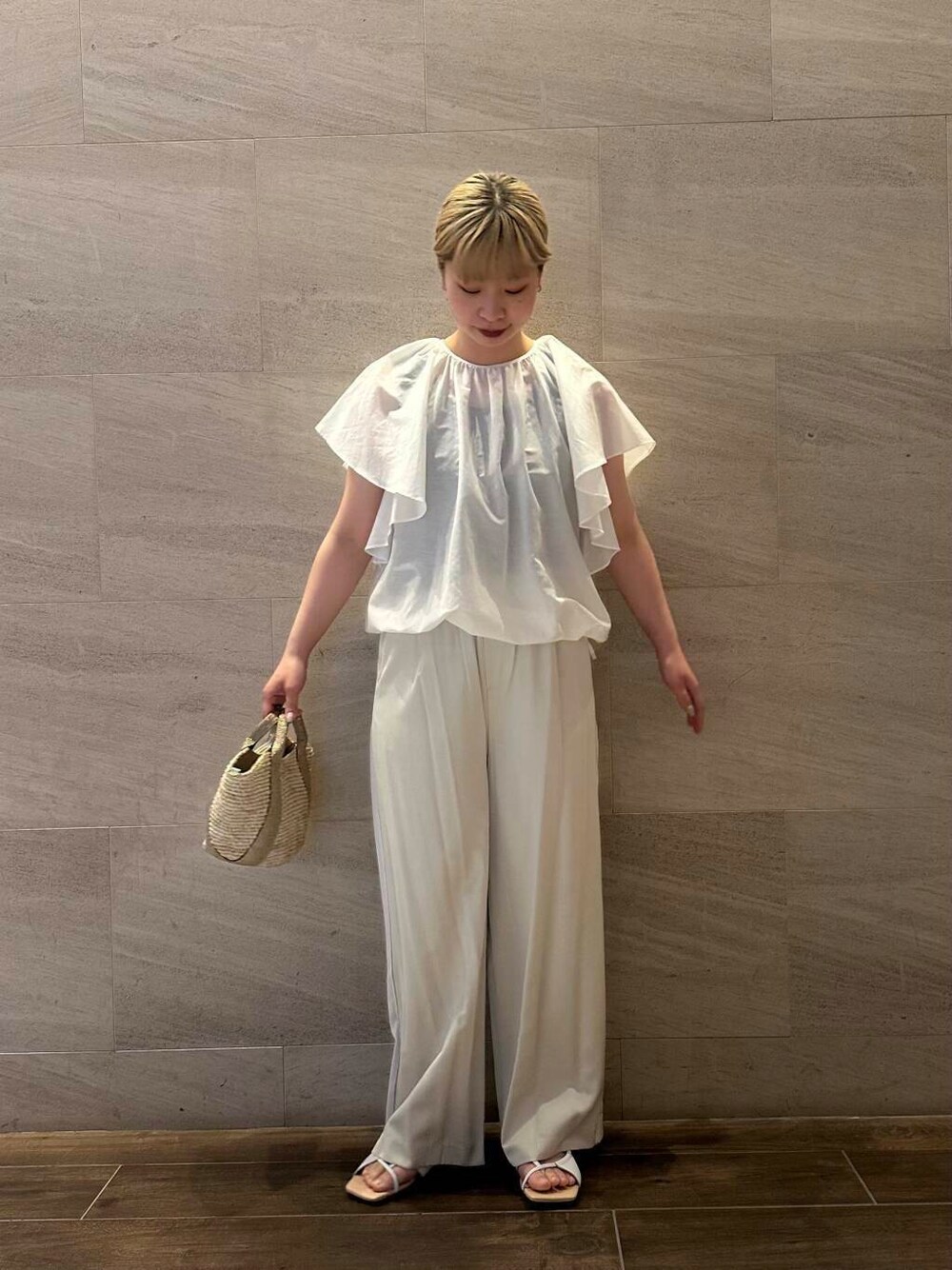 imamuraemi(URBAN RESEARCH アミュプラザ長崎)のかごバッグ「VIOLAd’ORO ラフィア2WAYバッグ」を使ったコーディネート