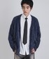 ブルーブラックをメインにバッグでボルドーをプラスしたコーデです。
