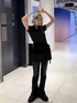 ブラックコーデをメインにドットのキャミワンピとチュールをプラスしてスタイルアップ↑