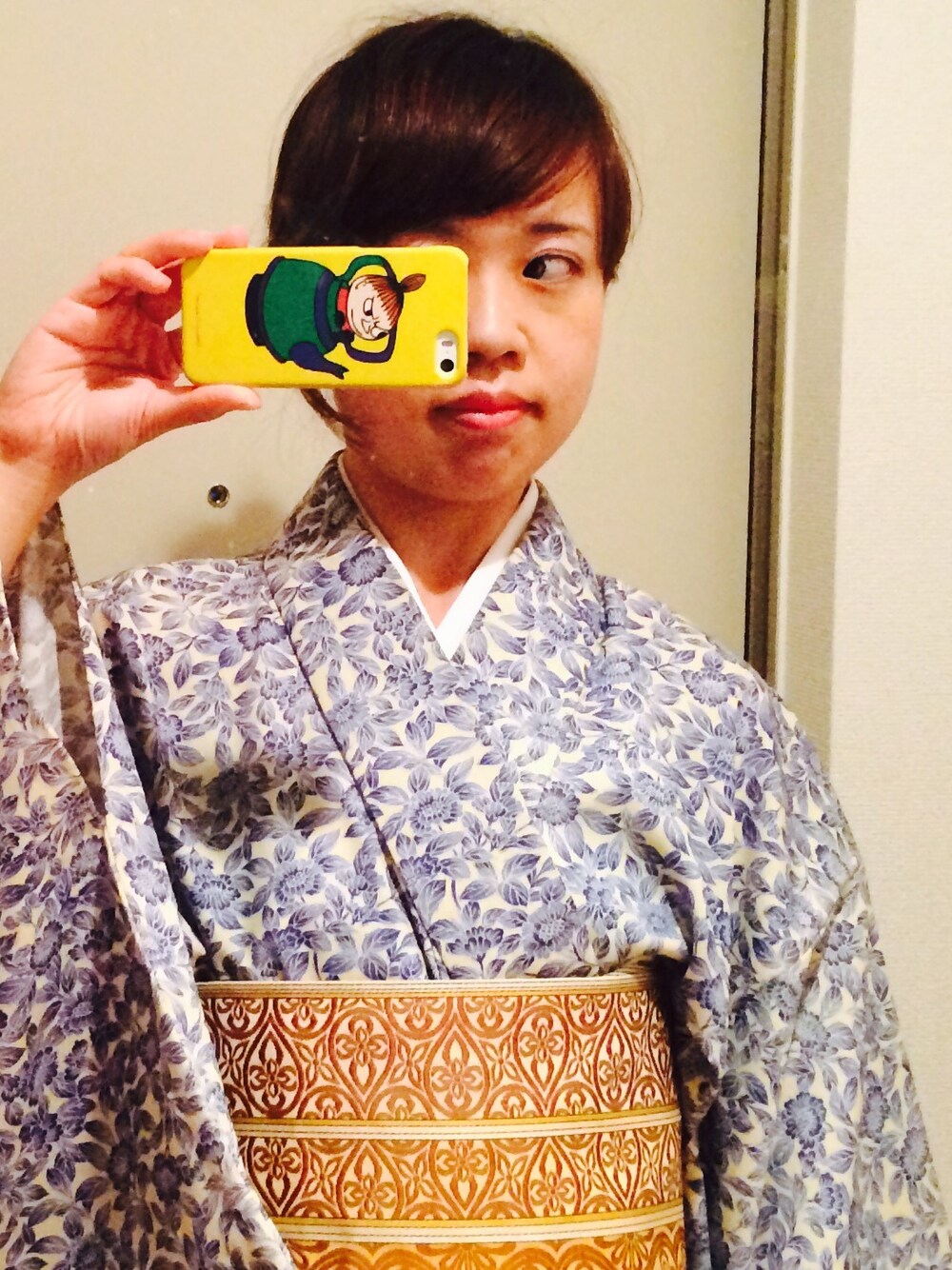 頂き物の単衣。 鎌倉で買った半幅帯。 こーゆー色が好き。 青、紺に弱い。