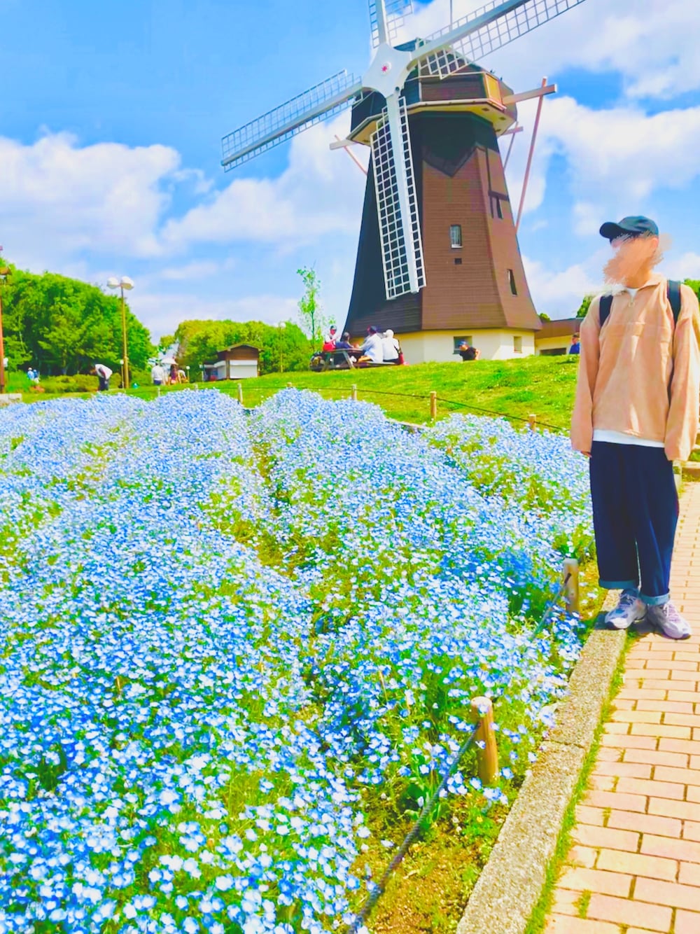 オランダっぽい1枚✨ ネモフィラ綺麗✨ お出かけゆるコーデ☀️ スニーカーは弟からの誕プレ🎁