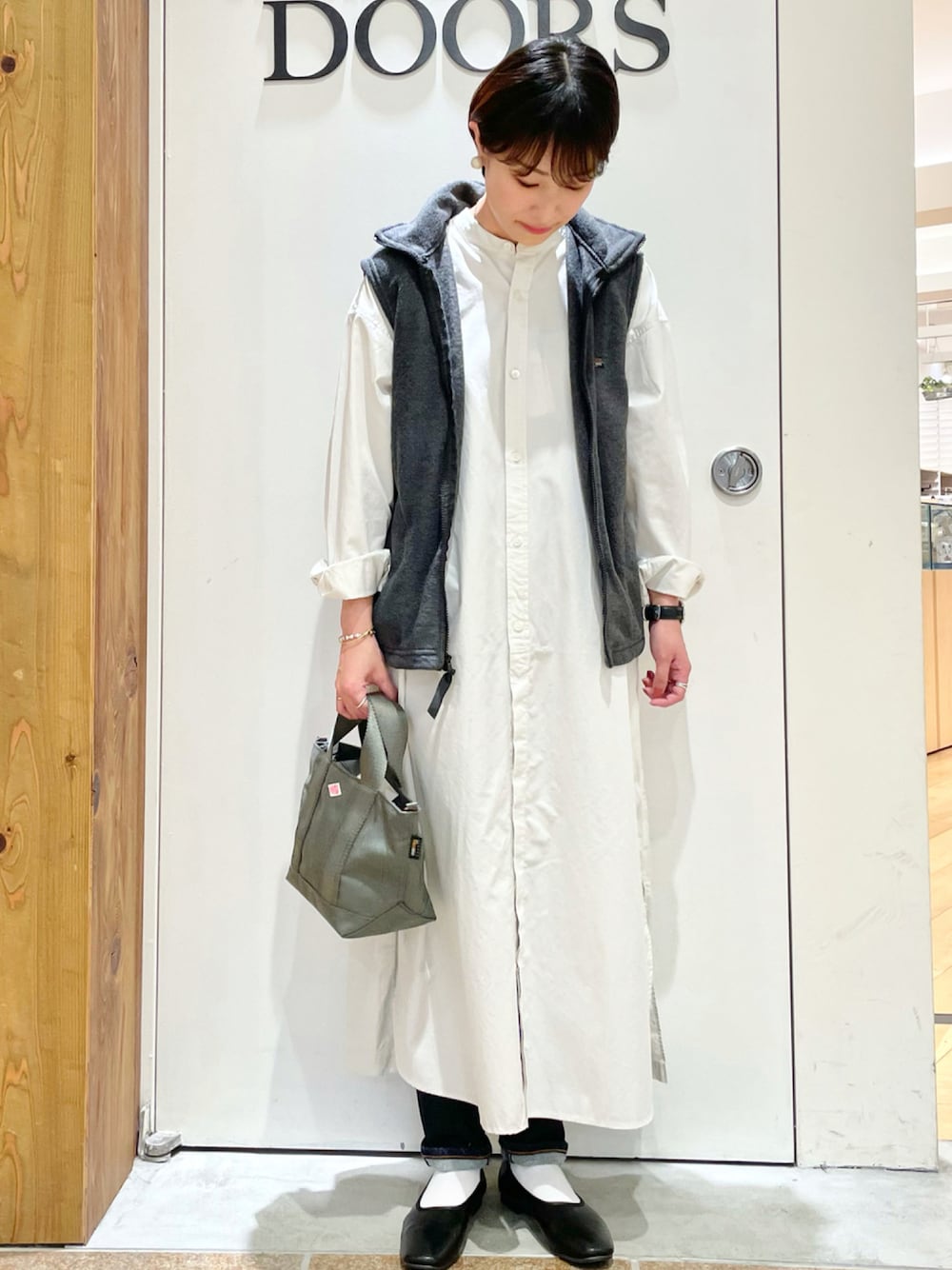 yokoo (DOORS ららぽーと柏の葉)のワンピース「FORK&SPOON バンドカラーオーバーシャツワンピース」を使ったコーディネート