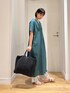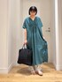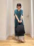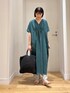 キレイなグリーンが目を引くワンピース! ゆったりなサイズ感で楽ちんですが、Vネックが首元をスッキリと見せてくれます! フロントとバックに施したタックがポイントに◎ 長すぎない丈感で、小柄な方にもオススメですよ! ぜひ、お試しください。
