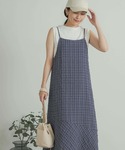 オススメのセールアイテムでコーディネートしてみました! チェックのキャミワンピースは、切り替え部分のデザインやフレアなシルエットがポイントに◎ ぜひ、お試しください。