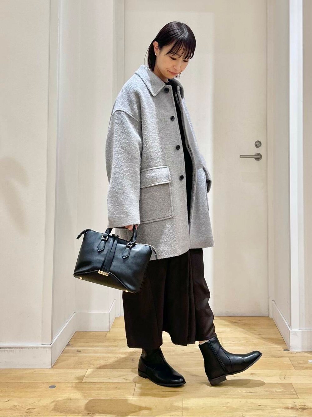 yokoo (DOORS ららぽーと柏の葉)のその他アウター「『WEB/一部店舗限定』FORK&SPOON アルパカシャギーバルカラーコート」を使ったコーディネート